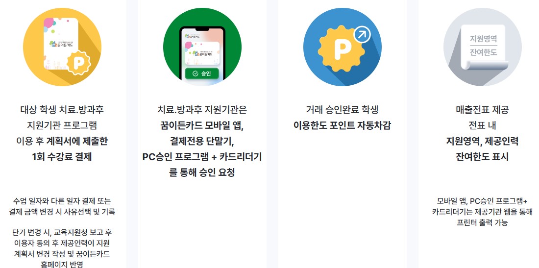 - 이용 방법: 지정된 치료 및 방과후 지원 기관에서 포인트 결제 방식으로 이용