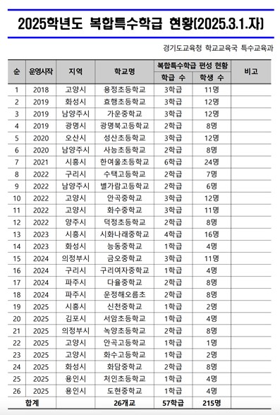 다음은 경기도 교육청 복합특수학급 현황입니다.